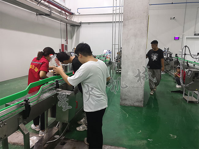 全自動調(diào)味油灌裝機生產(chǎn)線客戶操作現(xiàn)場