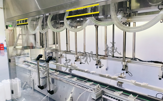江蘇自動(dòng)稱重灌裝機(jī)廠家針對(duì)這種液體的特點(diǎn),對(duì)設(shè)備進(jìn)行了一系列的升級(jí)改造,為了適應(yīng)化工液體的生產(chǎn)環(huán)境,設(shè)備采用了防爆設(shè)計(jì),SUS 304不銹鋼接觸面,耐腐蝕,耐酸堿,適合化工行業(yè)的生產(chǎn)環(huán)境。25公斤液體阻垢劑稱重灌裝旋蓋整線解決方案分為兩個(gè)部分:一個(gè)是灌裝部分,采用的是6頭大型液體稱重灌裝機(jī),灌裝范圍可從5-25kg調(diào)整,下潛式灌裝,灌裝頭下降到容器之中開始灌裝,避免了高速灌裝流量的沖擊,自動(dòng)調(diào)整灌裝速度,自動(dòng)除皮,稱重傳感器精度高,每小時(shí)可灌200-350桶,完全能滿足產(chǎn)線需求。另一個(gè)是旋蓋部分,振動(dòng)盤自動(dòng)理蓋落蓋,適配25公斤桶的螺紋蓋,扭矩可調(diào)(5-20N·m),防止過緊導(dǎo)致蓋子變形或過松引發(fā)泄漏。