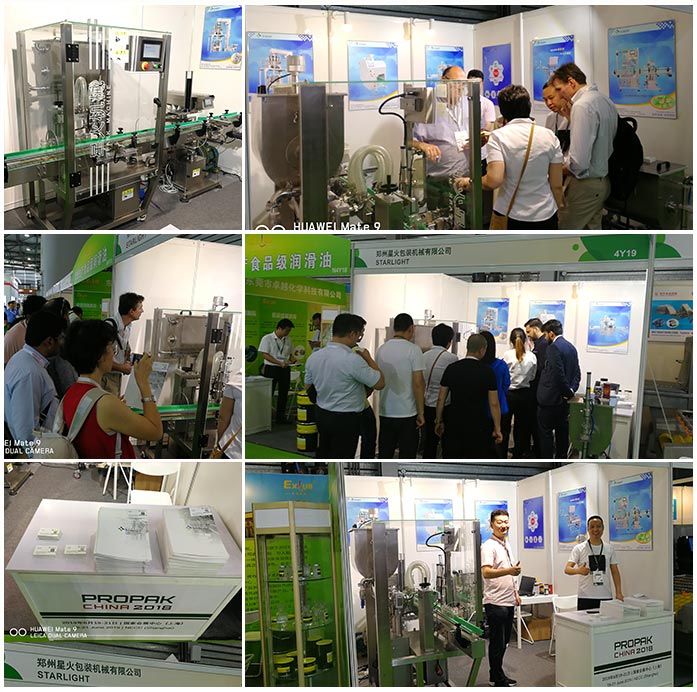 剛參加完2018第二十四屆上海國際加工包裝展的星火灌裝機,表現很贊!