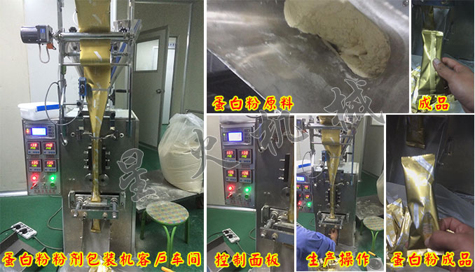 設備同時也可以包裝粉劑類產品,下面是蛋白粉客戶包裝生產現場: