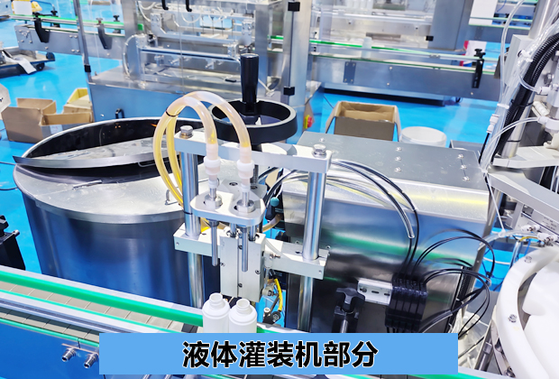 這是灌裝部分用到的設備,它負責把液體物料灌裝到每一個容器中,灌裝量根據(jù)自己的需求進行調(diào)整,10-300ml左右的可調(diào)范圍,滿足了多品種灌裝需求。