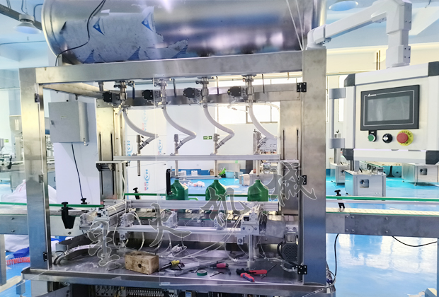 這款4頭液體稱重灌裝機(jī)是用來(lái)灌裝1-5L液體的設(shè)備,和傳統(tǒng)的灌裝設(shè)備有所不同的是,它采用自動(dòng)稱重灌裝方式,是一種現(xiàn)代化的全自動(dòng)消毒液灌裝機(jī),包括供料系統(tǒng)、稱重系統(tǒng)、控制系統(tǒng)等,實(shí)現(xiàn)全自動(dòng)進(jìn)桶、計(jì)數(shù)、灌裝、出桶過(guò)程,支持液面上/液面下灌裝方式,并配備防滴漏裝置,防止液體滴漏。該設(shè)備適用范圍廣,靈活性強(qiáng),能滿足不同產(chǎn)品及不同規(guī)格的液體物料灌裝。