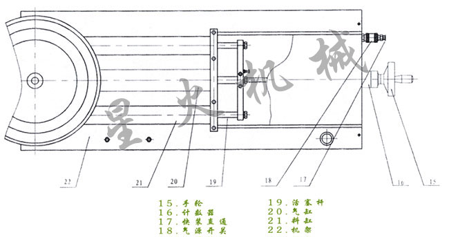 工作原理:粘稠膏體灌裝機是本公司開發(fā)的DY半自動活塞式灌裝系列的一種對高濃度流體進行灌裝的設備。它是通過氣缸同時帶動兩個活塞以及轉閥的三通原理來抽取和打出高濃度物料,并以信號閥控制氣缸的行程,通過15手輪(結構俯視示意圖圖二)調節(jié)灌裝量。由于本設備采用雙頭同時灌裝,大大提高了工作效率,是中小企業(yè)的理想選擇。