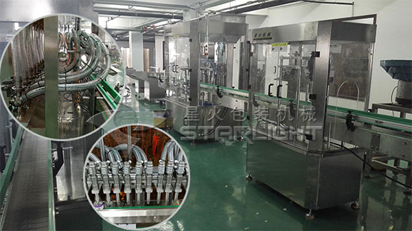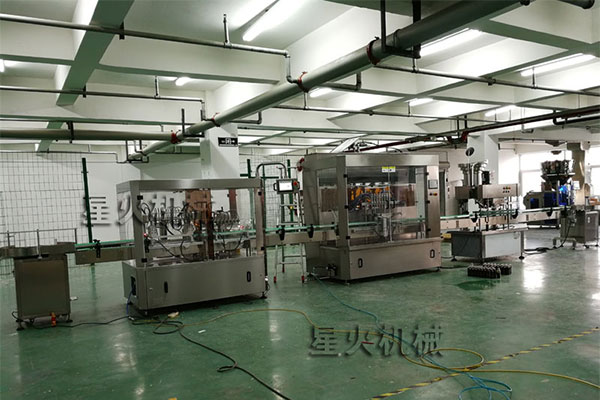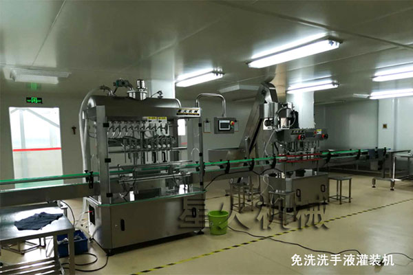 星火免洗手液灌裝流水線車間設(shè)備展示