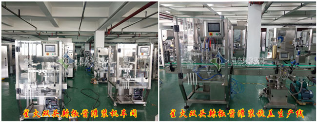 雙頭自動(dòng)辣椒醬灌裝機(jī)是我司為辣椒醬、豆豉醬生產(chǎn)企業(yè)定制的又一款醬料灌裝機(jī),是一款集光、機(jī)、電、氣于一體的自動(dòng)化設(shè)備,采用活塞式定量原理,灌裝精度高,操作簡(jiǎn)單,維護(hù)方便,設(shè)備主要材質(zhì)采用不銹鋼制造,符合衛(wèi)生要求。該機(jī)可單機(jī)使用,也可配玻璃瓶真空旋蓋機(jī)、自動(dòng)圓瓶貼標(biāo)機(jī)、瓶蓋噴碼機(jī)等設(shè)備使用;適用于流體及大顆粒醬料瓶裝灌裝,如辣椒醬醬、豆豉醬、牛肉醬、豆瓣醬、橄欖菜等。可加攪拌,特別適合醬料企業(yè)使用,可大大減輕勞動(dòng)強(qiáng)度,提高灌裝效率;廣泛應(yīng)用于食品、醬料行業(yè)產(chǎn)品的自動(dòng)化包裝生產(chǎn)。