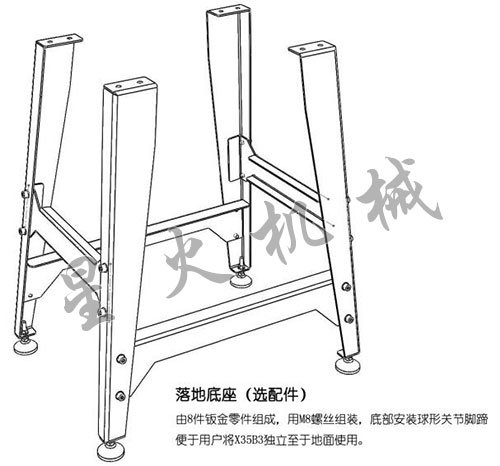本機(jī)型選配可組裝底座,按下圖組裝并與主機(jī)連接緊固,機(jī)器即可落地使用。
